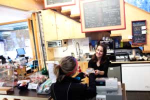 We’re an organically-minded café serving fresh fruit smoothies, homemade soup (in the winter) and grilled sandwiches and the famous $2 cookie, baked in-house daily.